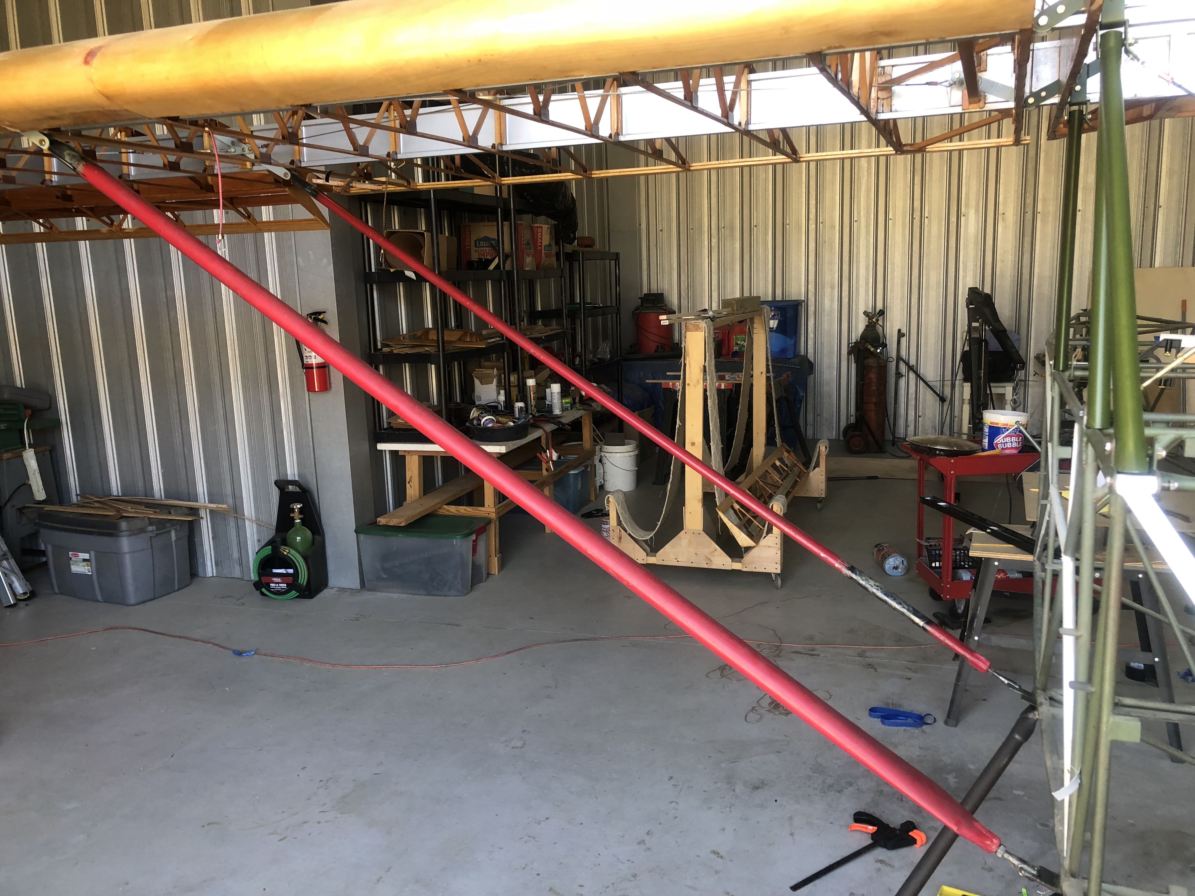 2. In addition, I have a set of 3 pc wings 90% complete. Aluminum extruded spars with Riblett 613.5 airfoil. Drag wires are in. Wing tip bows are done. Center section probably needs to be redone, but all fittings are welded. J3 cub struts come with the wings. Wings include wing rack for transport. $2500 or best offer