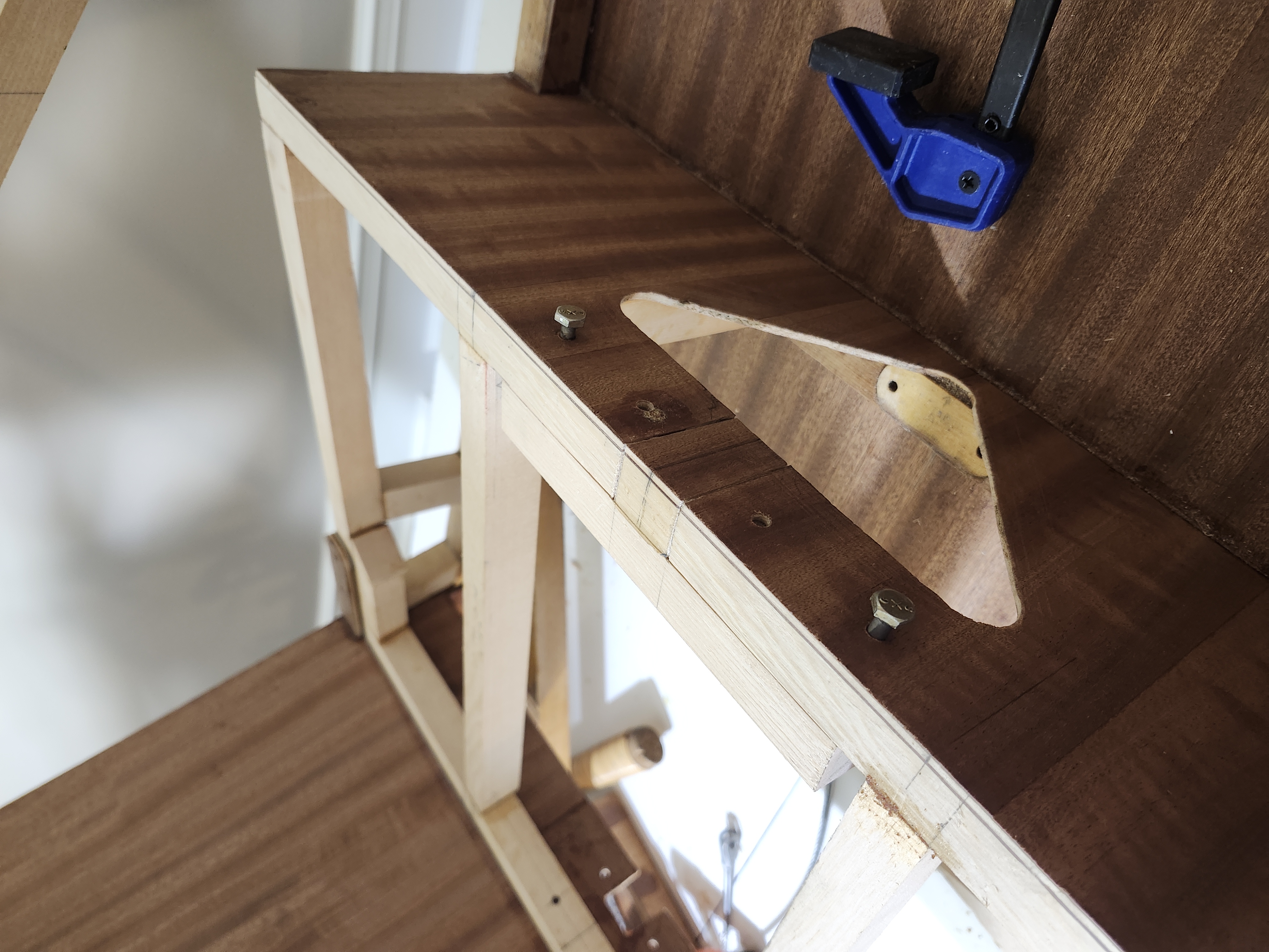 Center seat support glue up.