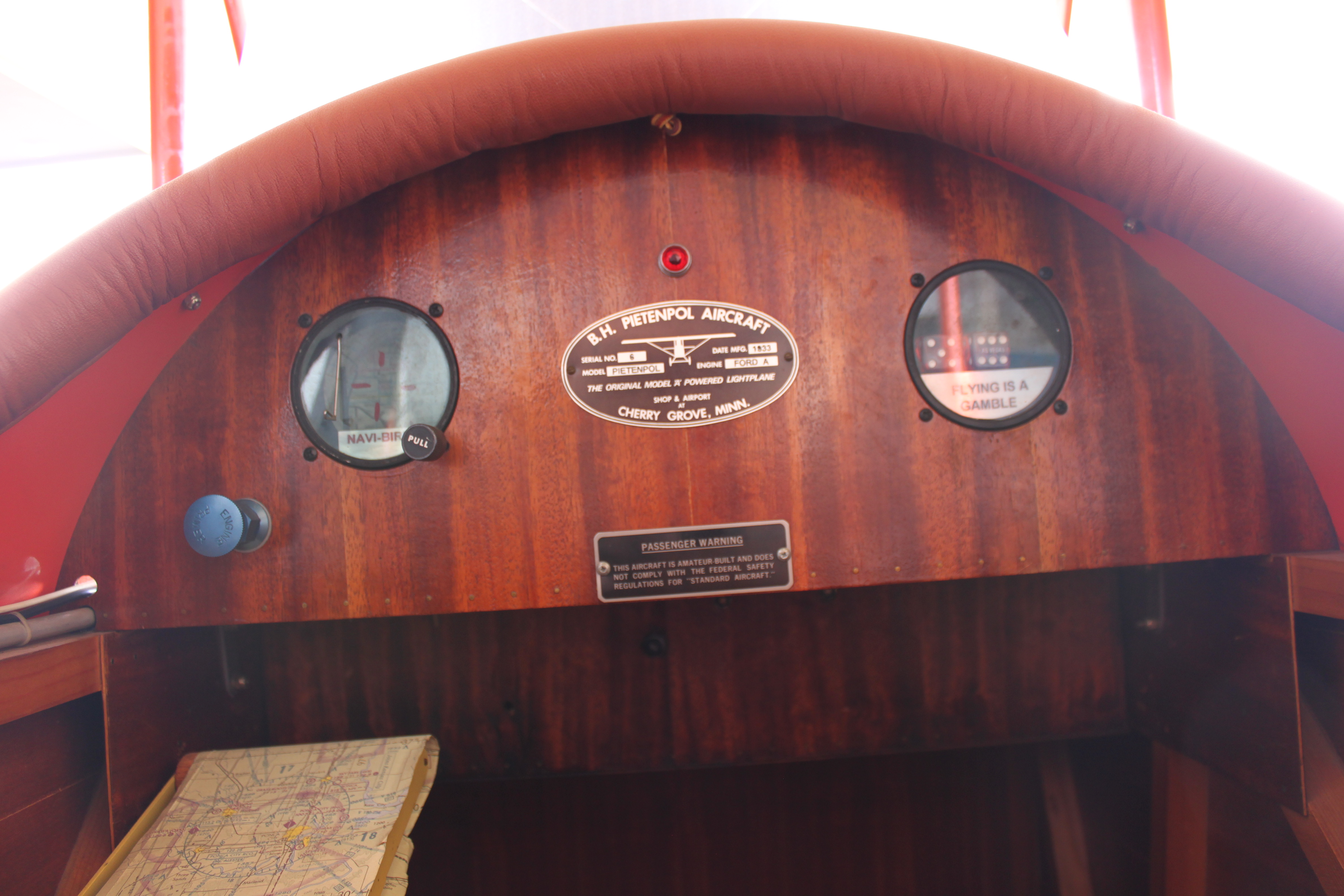 Oscar. I apologize for not answering your question about Ken's Piet front cockpit instruments. I missed it entirely. Yes, it does still have the two dice instrument that say "Flying is a gamble". It also still has the "navibird" installed. I did take out the toilet paper roll moving map, it was always in the way when trying to get someone into the front cockpit.