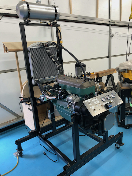 JCB: that's a very sanitary test stand setup. Nice! What are you driving on the output end of the crank? Is that a hydraulic pump or something that you can use as a variable load dyno?