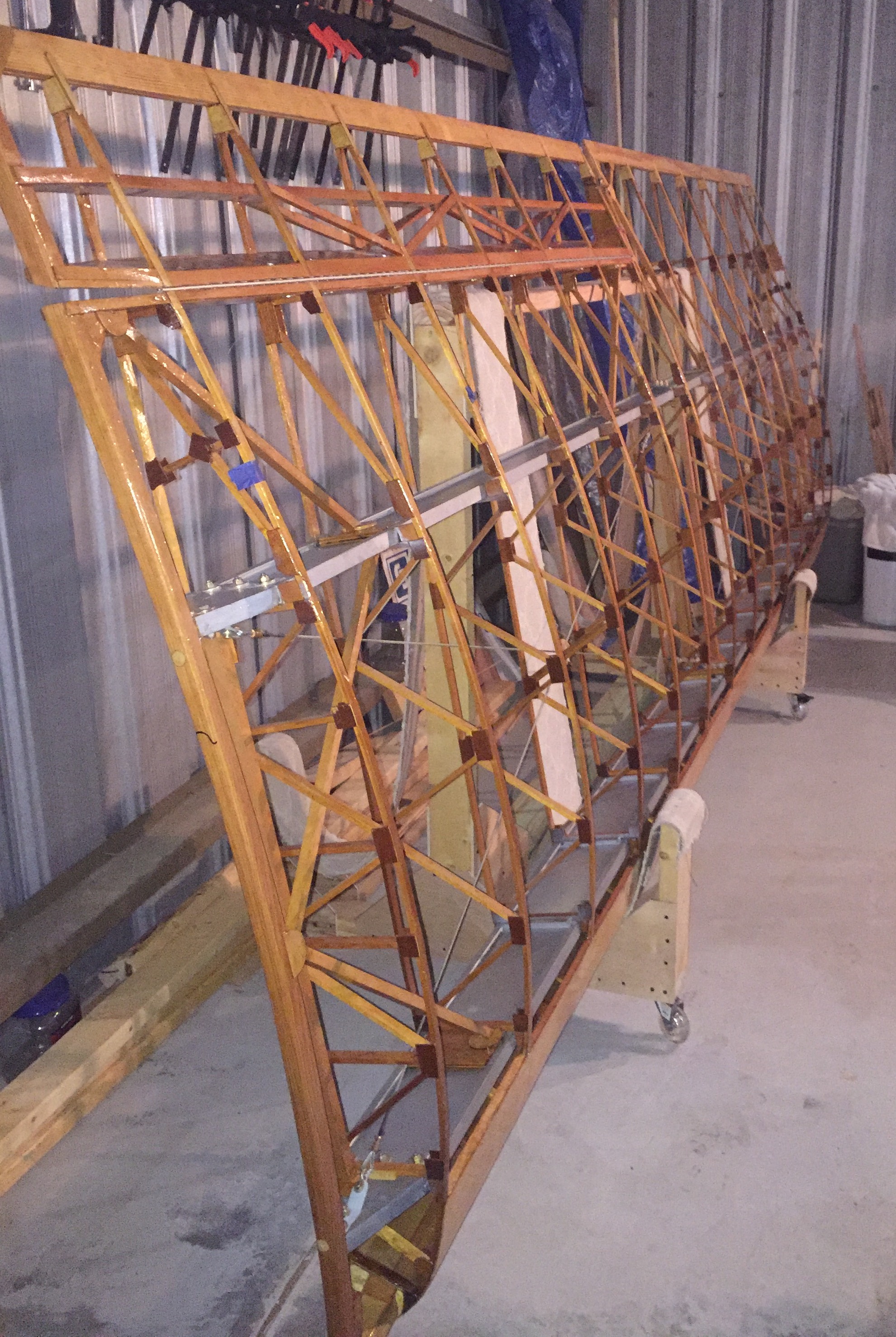 2. In addition, I have a set of 3 pc wings 90% complete. Aluminum extruded spars with Riblett 613.5 airfoil. Drag wires are in. Wing tip bows are done. Center section probably needs to be redone, but all fittings are welded. J3 cub struts come with the wings. Wings include wing rack for transport. $2500 or best offer