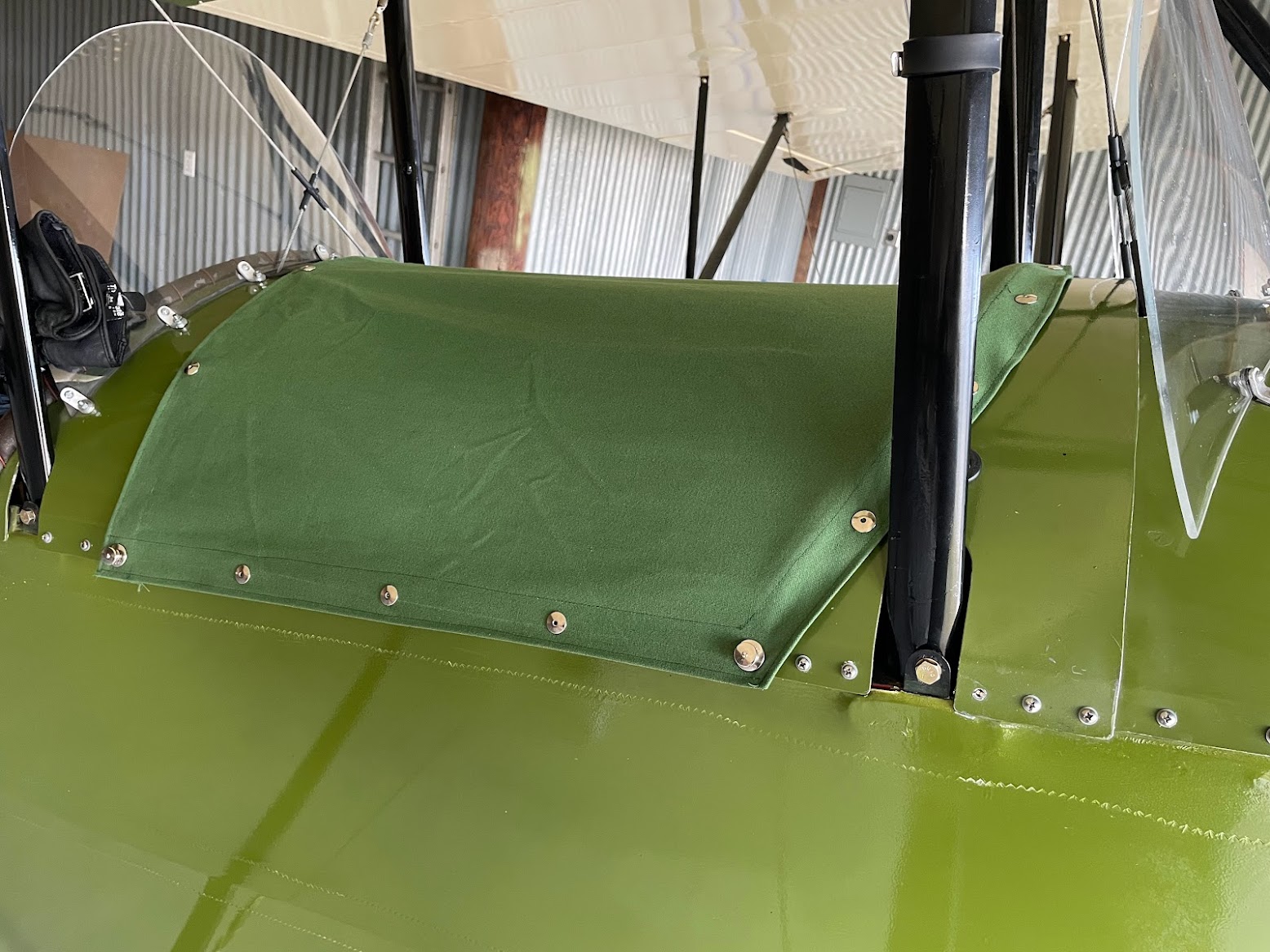On the rear pit, I used snaps all the way around. I only cover that pit when rain looks likely. And obviously it is never covered when in flight -- though that would be a way, I suppose, to replicate IMC conditions in a Piet :)