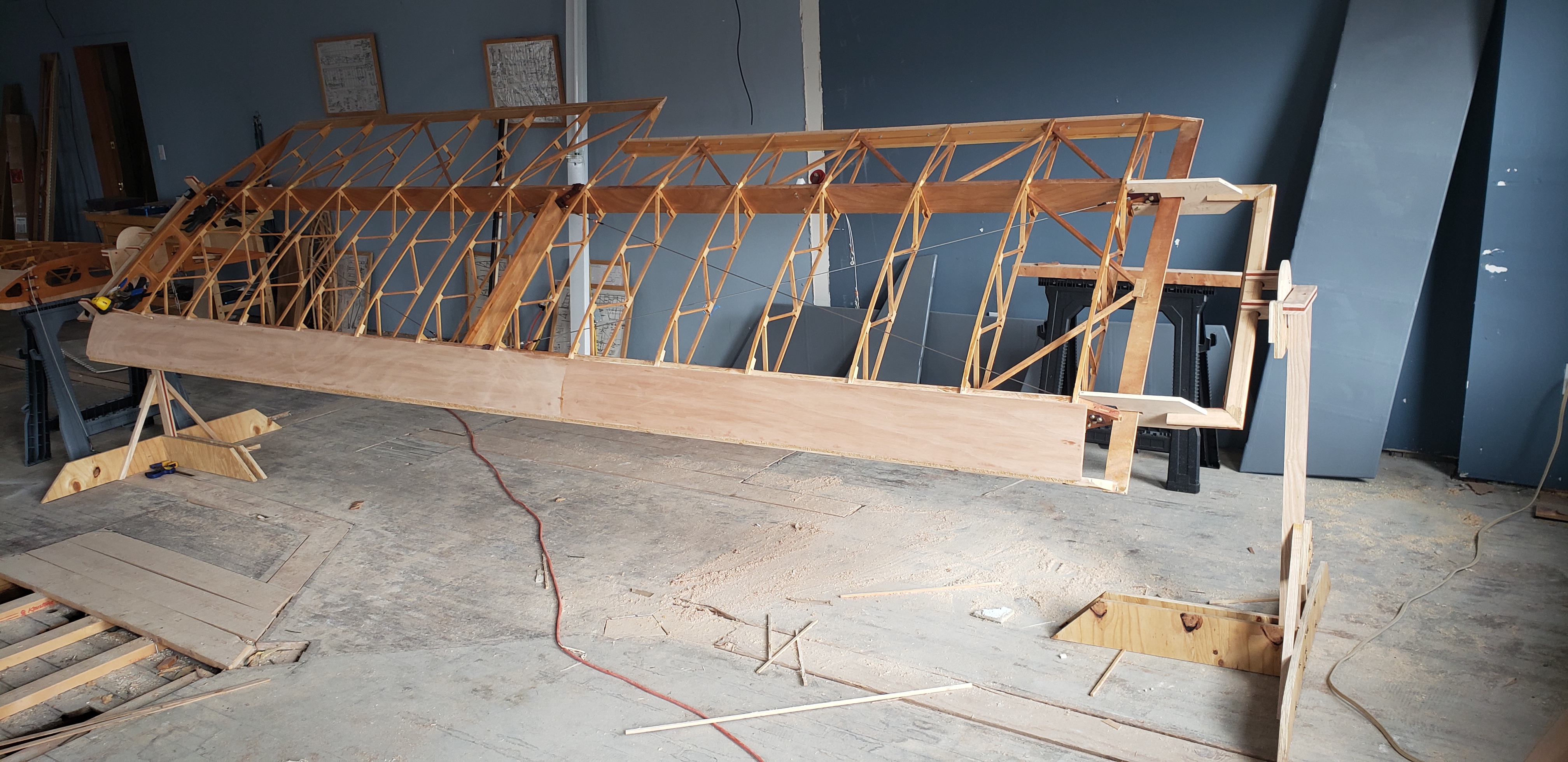 Dave, I'm impressed with your wing stands. I'm puzzled, though, how you are going to do the fabric covering on the outboard ends. Maybe you've got that figured out. I'm curious: how are you planning to do that? Cheers, Ken